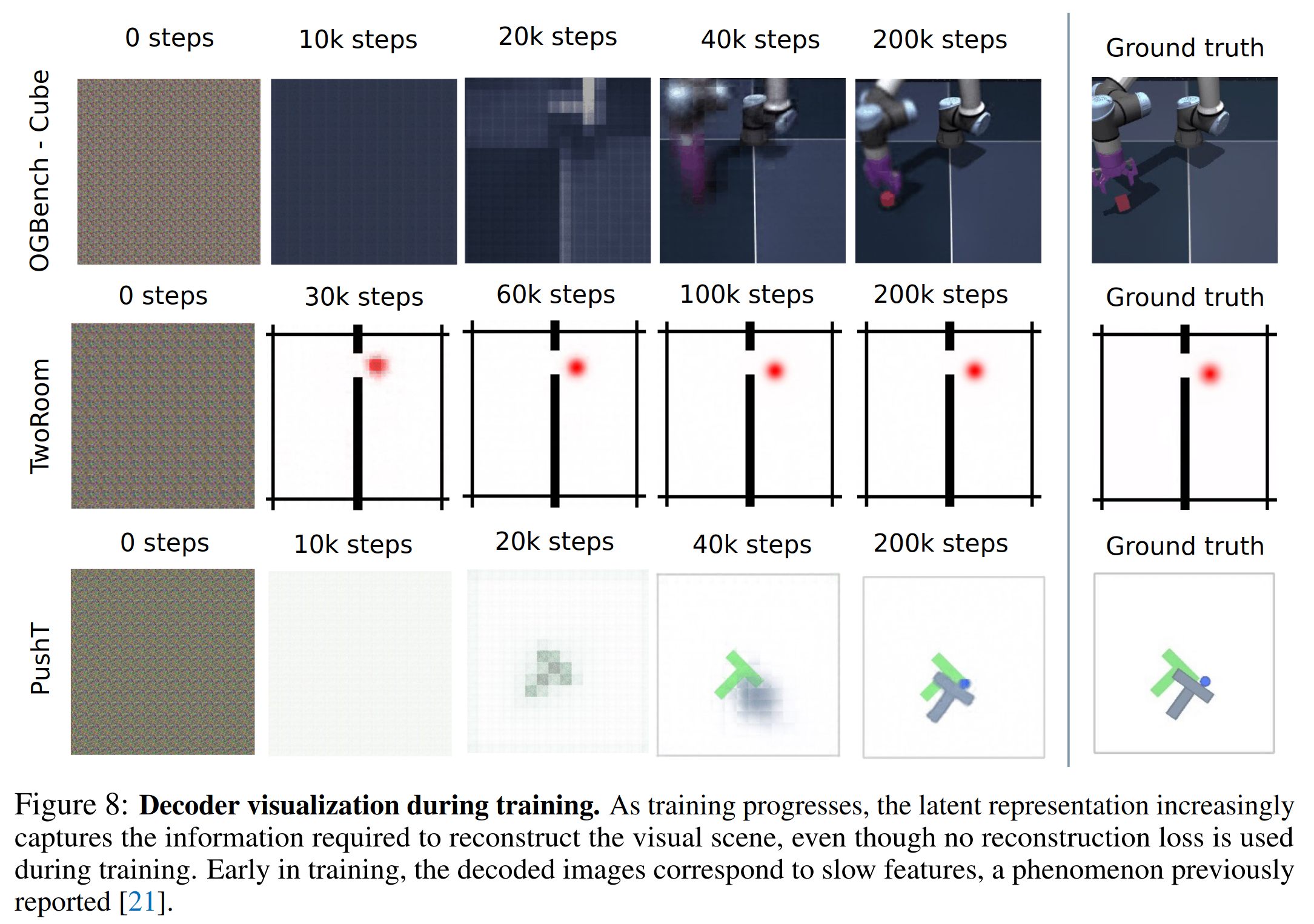 训练了一个可视化decoder,说明latent是具备图像恢复能力的。不过论文没展开将太多实验细节。一般来说应该要OOD地去验证visualization decoder是不是hard code了训练样本。