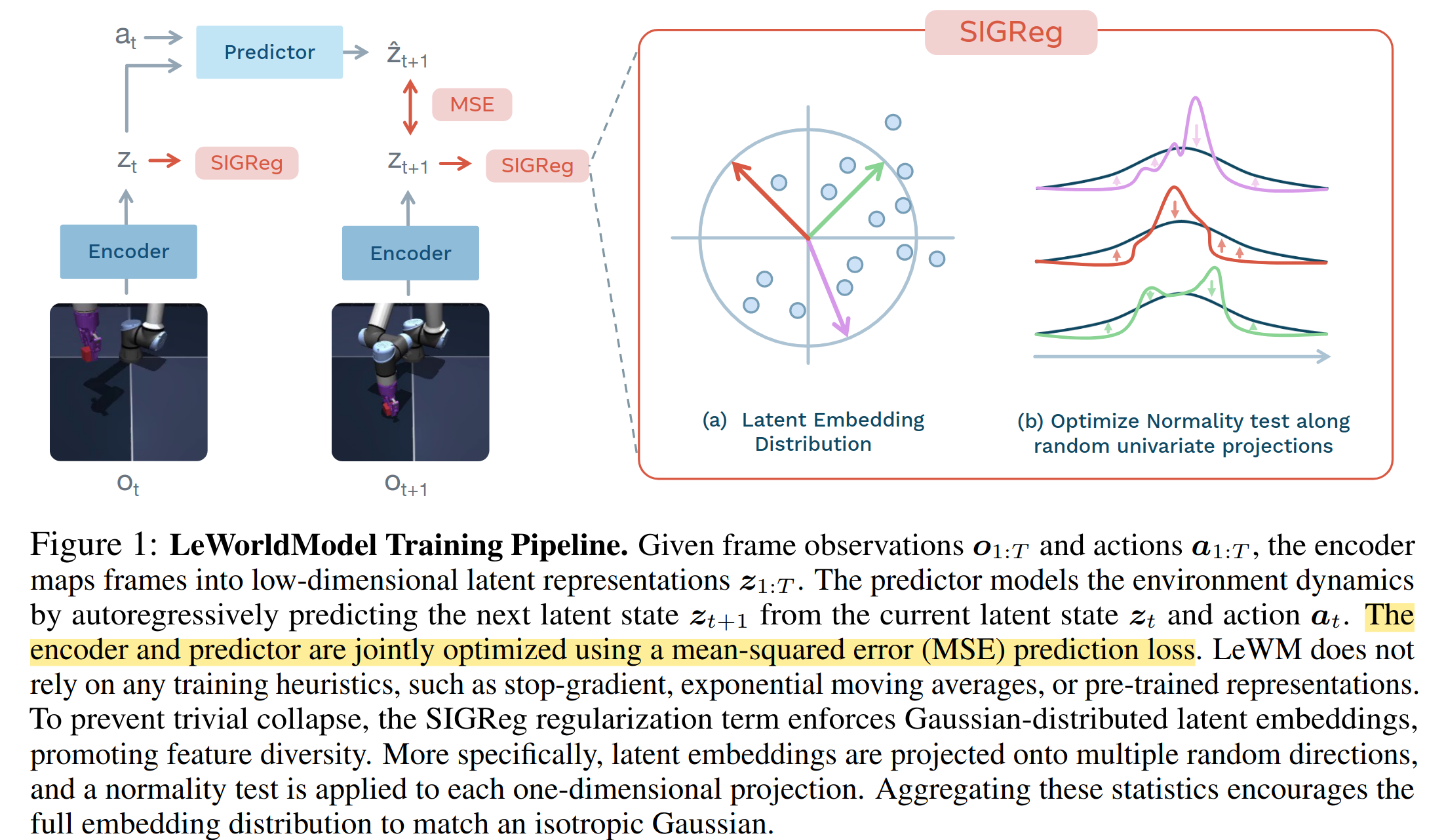 如果单看LeWorldModel这一文,方法本身是很简单的。但是里面引用了 A Path Towards Autonomous Machine Intelligence 和 LeJEPA: Provable and Scalable Self-Supervised Learning Without the Heuristics的诸多结论,后面会补齐后面两文的学习文档。
